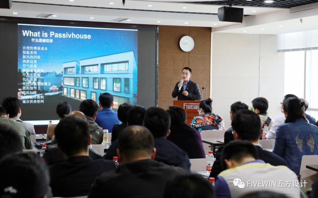 五方设计总工陈先志及副总建筑师贠清华,在活动的技术宣讲环节,向参会来宾进行了题为《被动房技术》及《五方科技馆项目的被动房之路》的技术讲座,就被动房项目建设过程中出现的技术问题做了分析和分享。